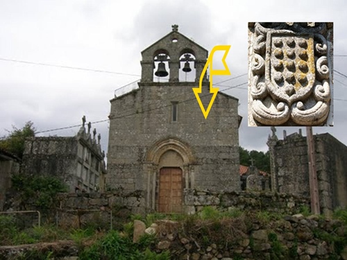 Lendo detidamente un artigo seu, dice que a dereita da apertura da ventana do hastial, atópase encastrado no muro a labra dos Sarmiento, Conde de Ribadavia, como dono que era da Igrexa alá polo ano 1487.